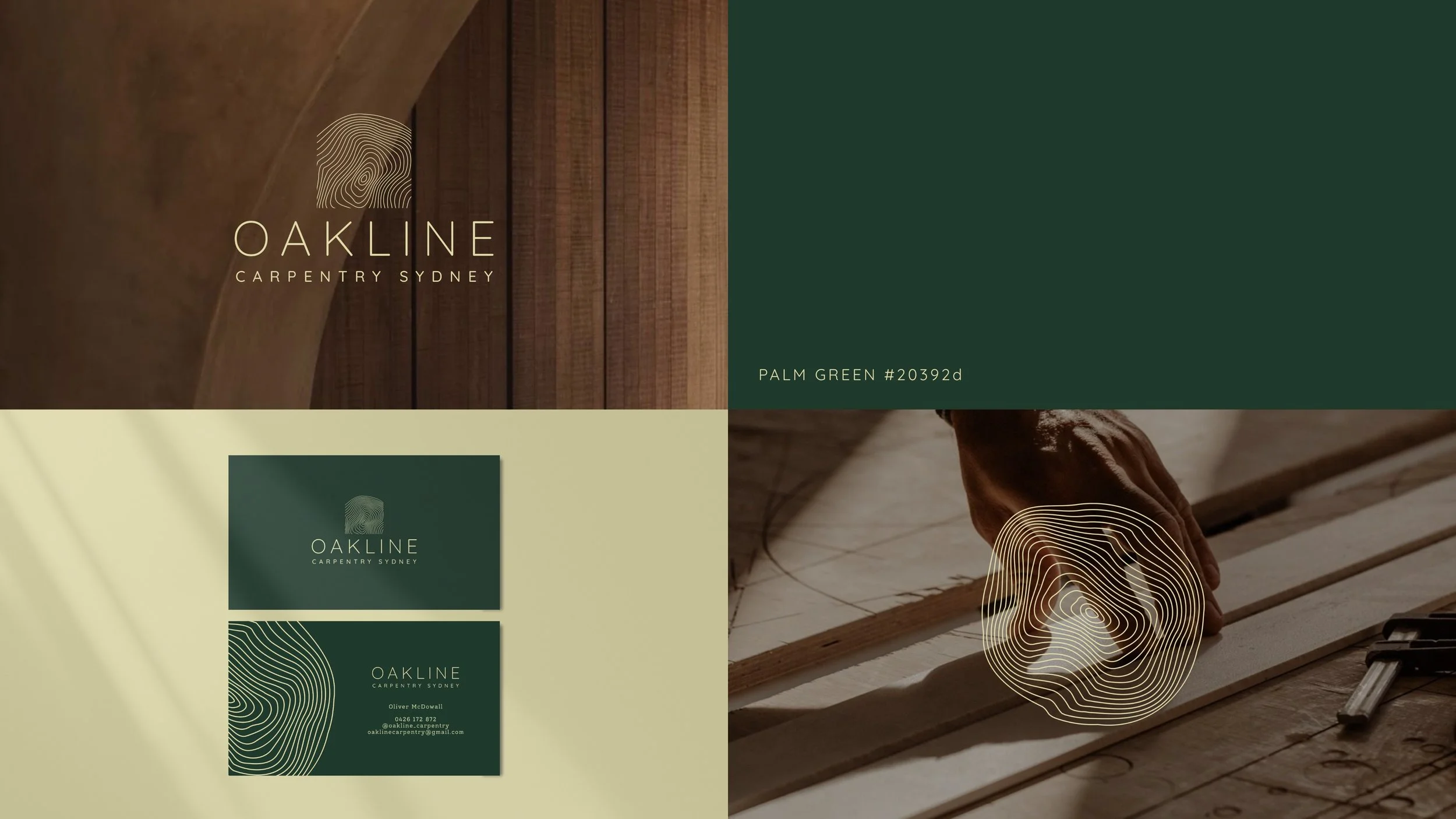 The logo is simple, modern and luxe - aligning to OAKLINE CARPENTRY’s portfolio of work. The icon represents the natural rings of an aged oak tree, but cropped into the modern formation reminiscent of a building silhouette. A collision of natural and modern design.