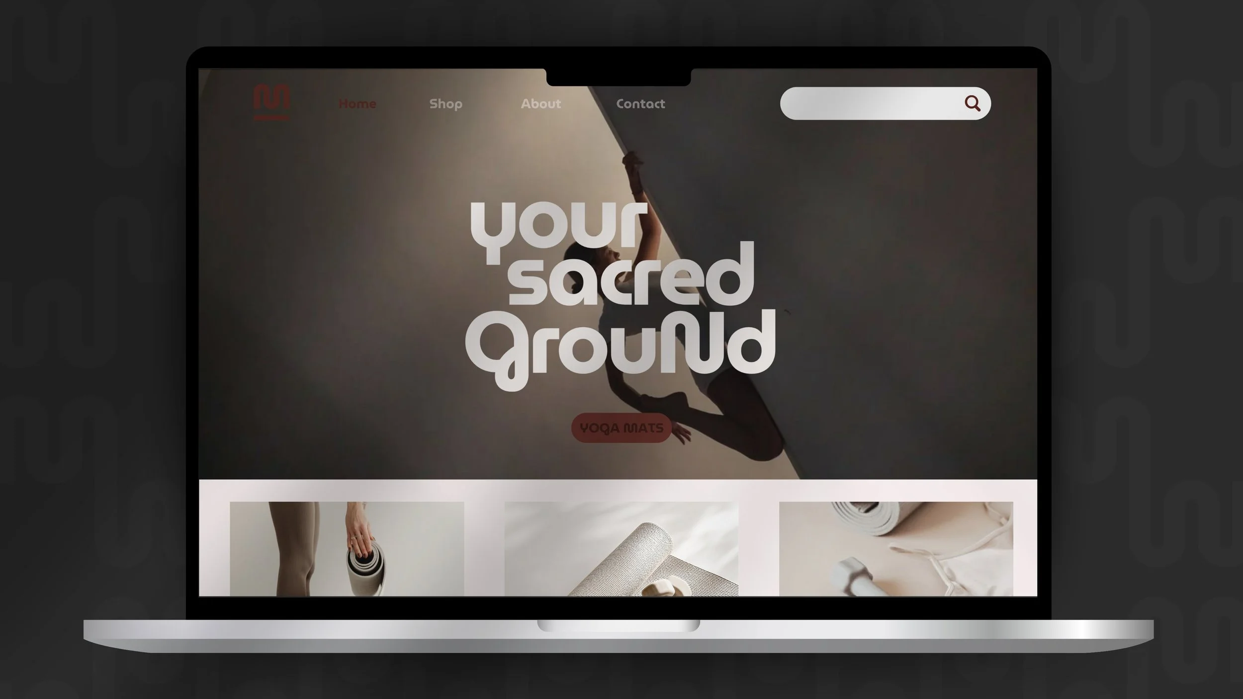 Featuring official monogram pattern as background, showing the iconic ‘M’ as an unrolling mat.