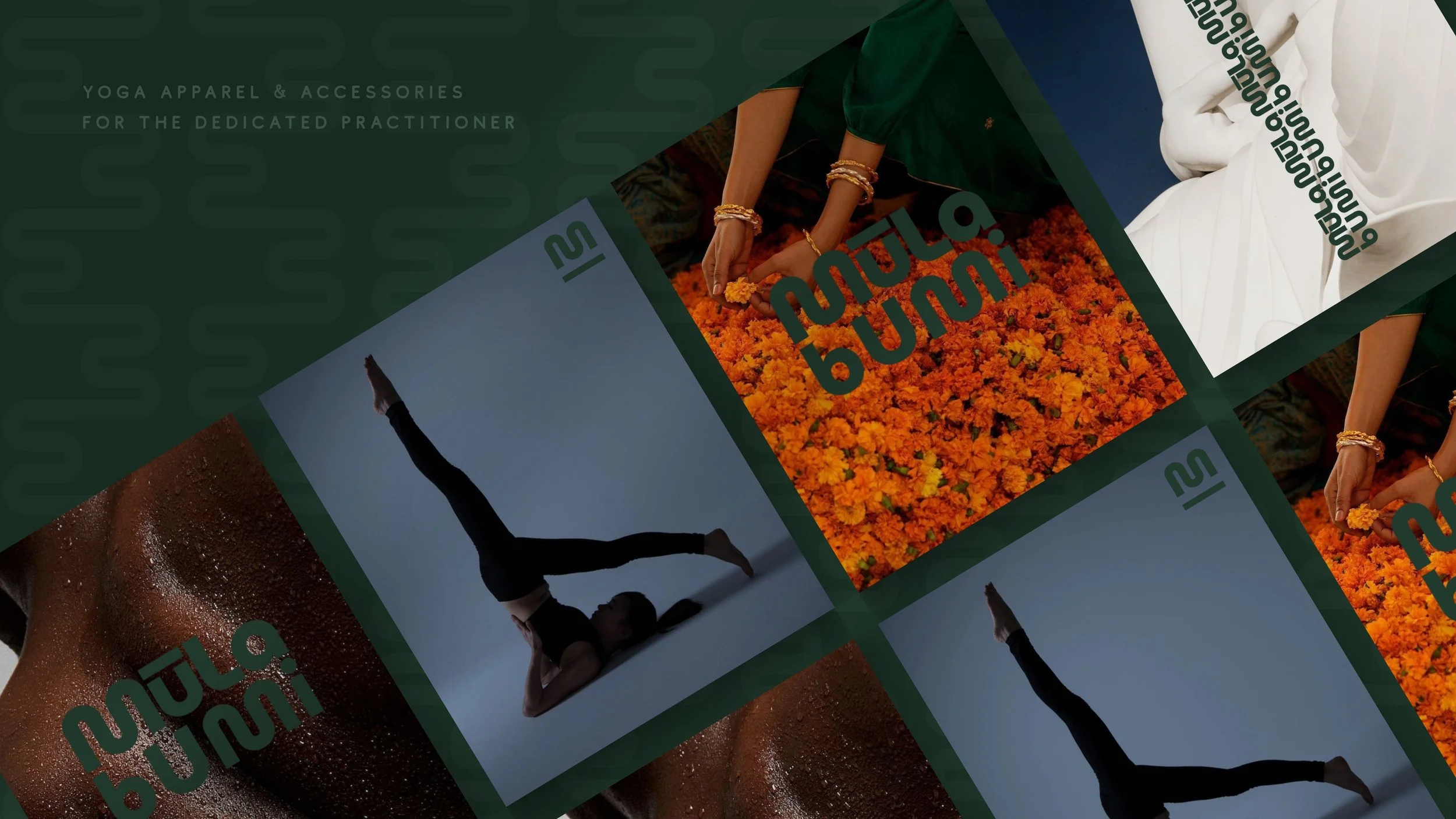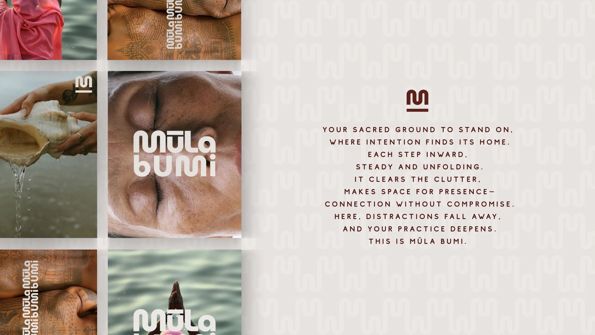 Featuring mood board for the brand feeling: a marriage between ancient teachings born in South East Asia and modern practices shared across the West.